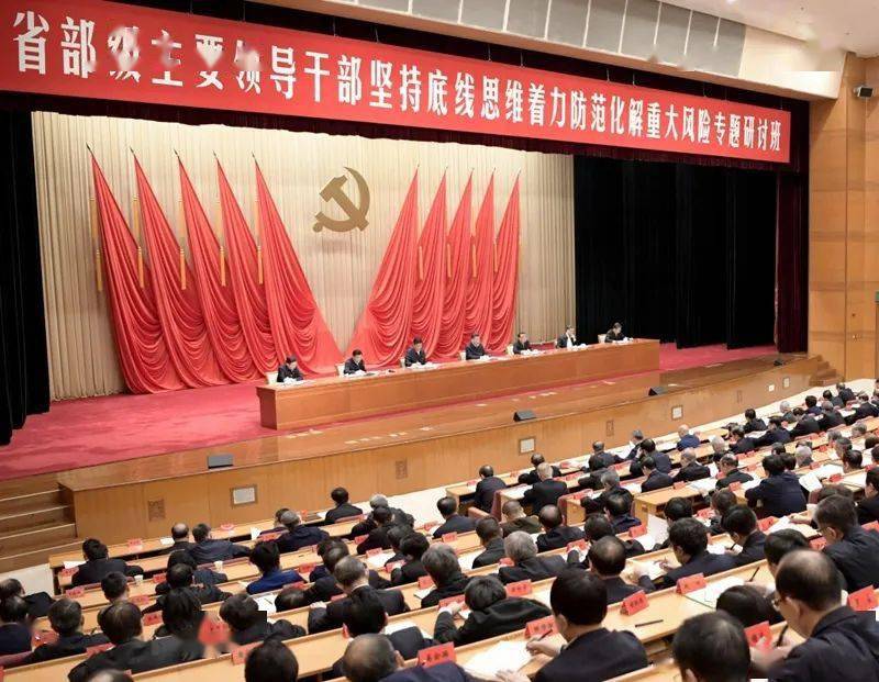 ☆总书记讲话强调:坚持以新时代中国特色社会主义思想为指导,全面贯彻落实党的十九大和十九届二中、三中全会精神,深刻认识和准确把握外部环境的深刻变化和我国改革发展稳定面临的新情况新问题新挑战,坚持底线思维,增强忧患意识,提高防控能力,着力防范化解重大风险,保持经济持续健康发展和社会大局稳定,为决胜全面建成小康社会、夺取新时代中国特色社会主义伟大胜利、实现中华民族伟大复兴的中国梦提供坚强保障。